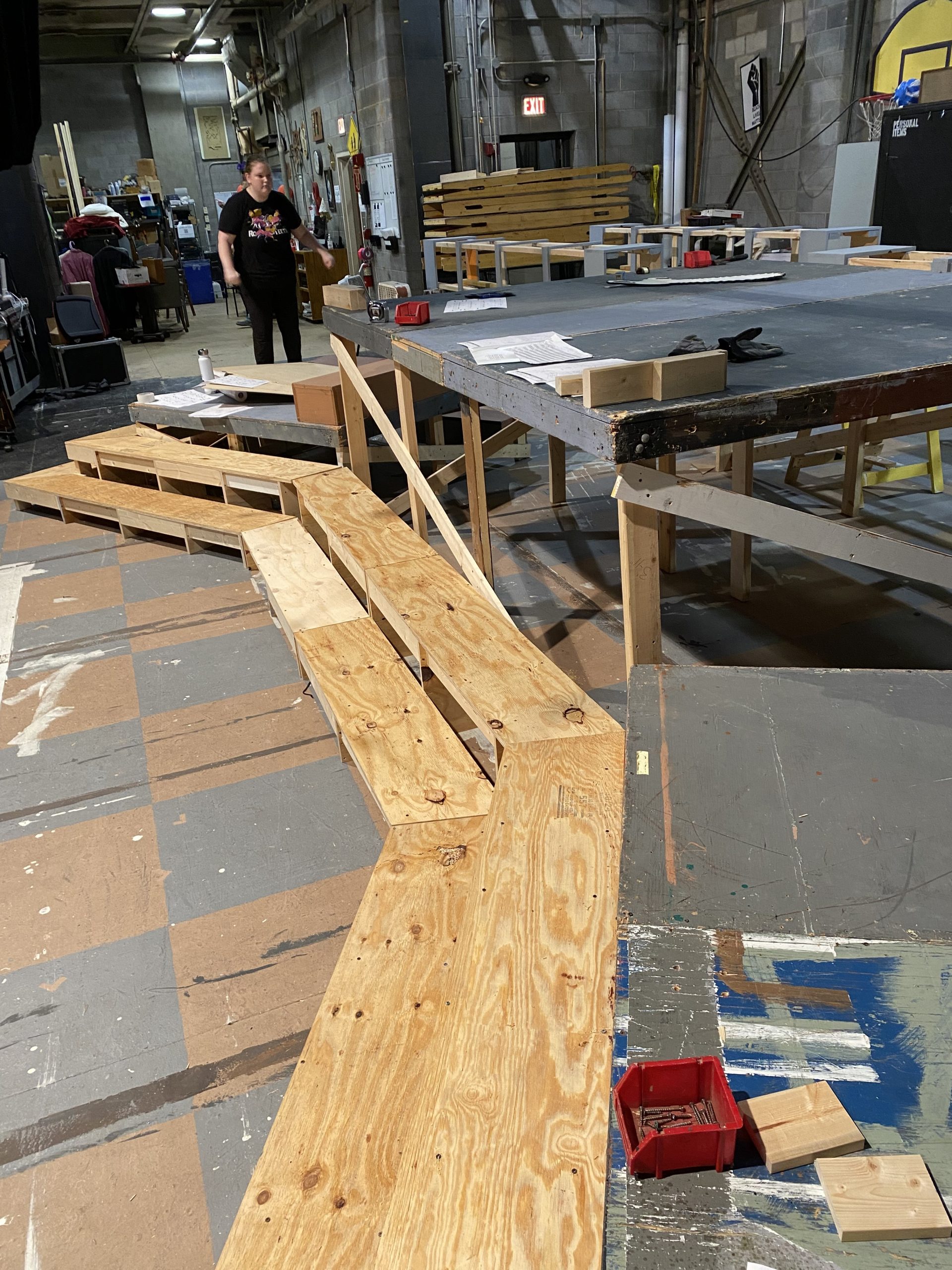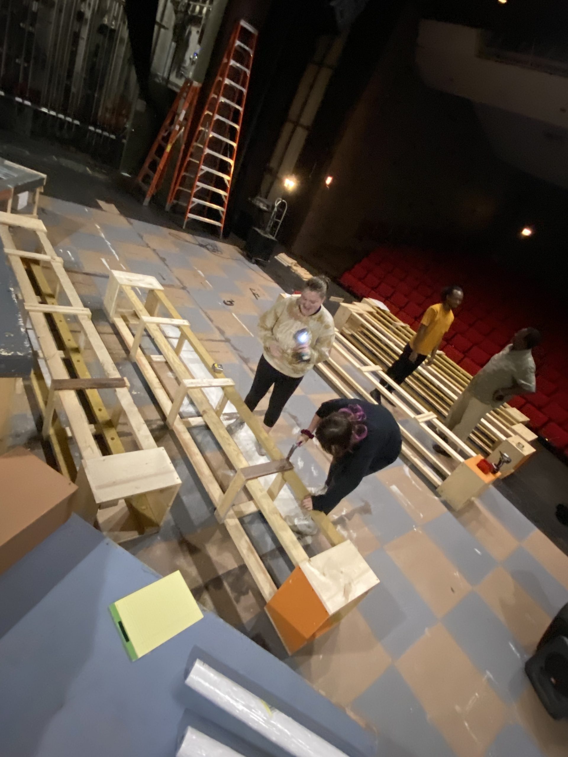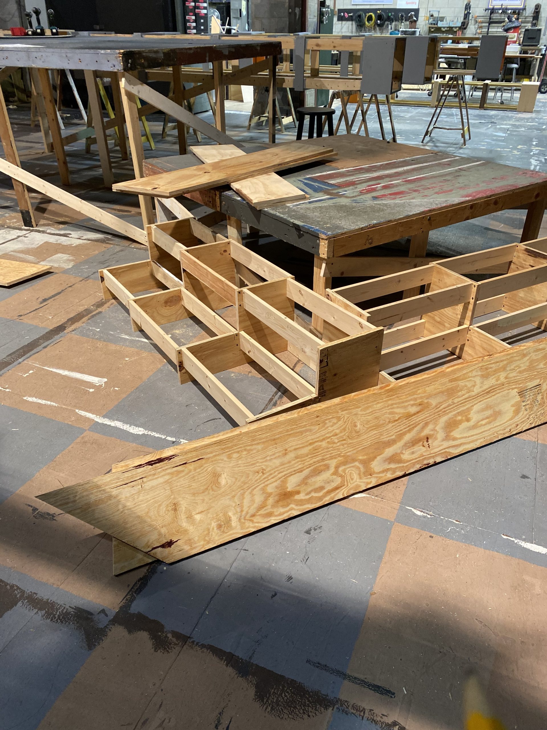 Under the Technical Director, I collaborated with scenic technicians and supervised construction students to create scenic elements including: making cut lists; building & installing platforms, step units, furniture, & light columns; rigging; base painting.