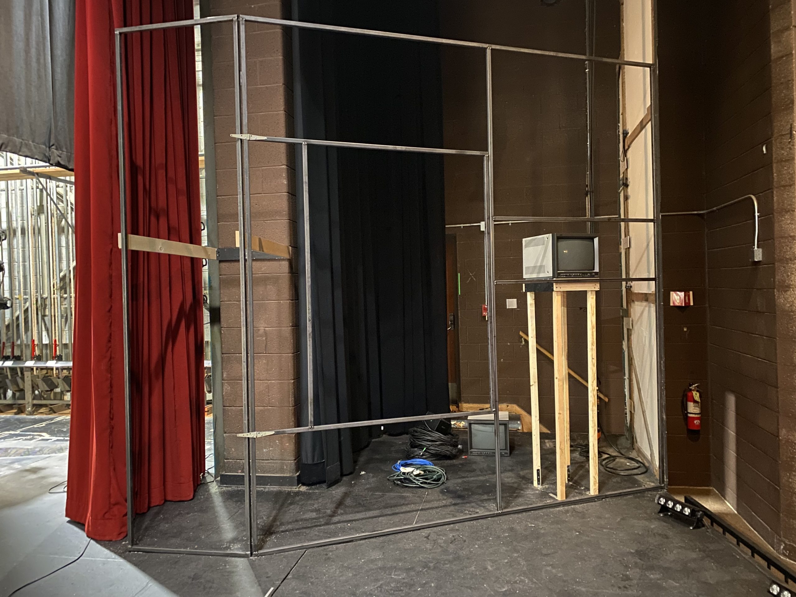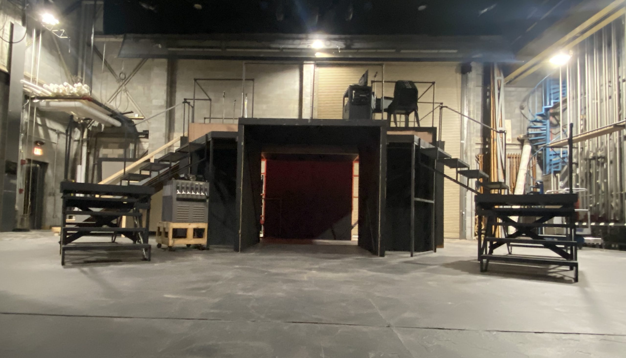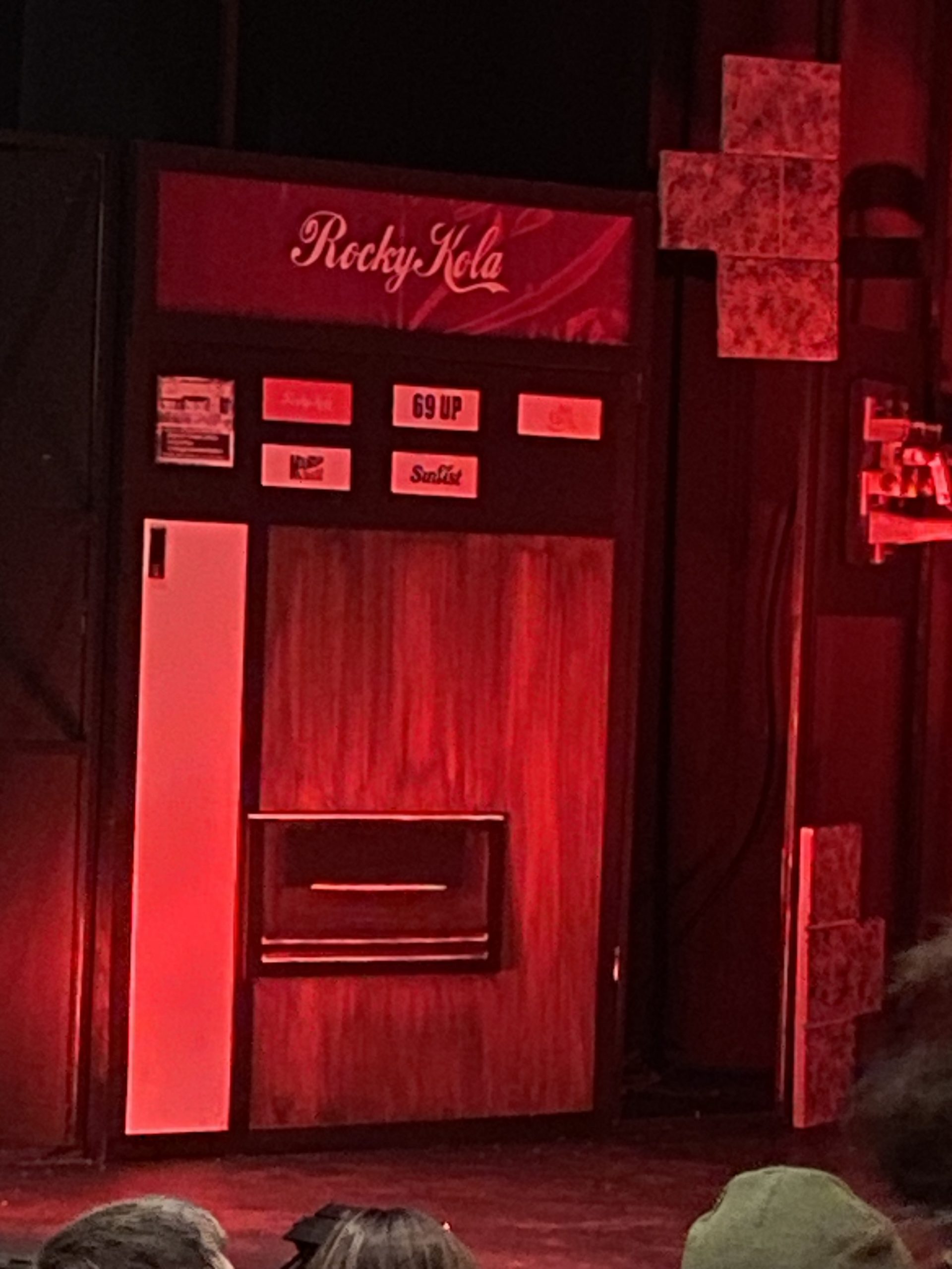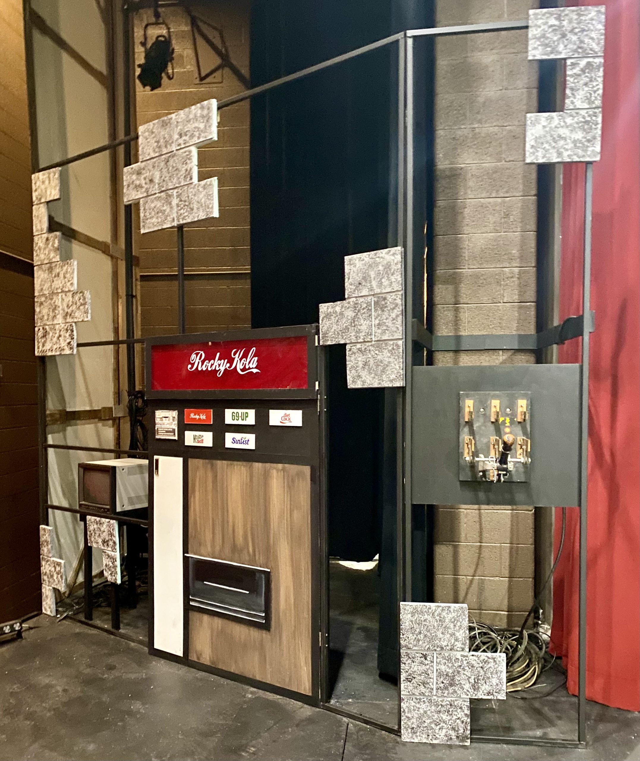 Under the Technical Director, I collaborated with scenic technicians and supervised construction students to create scenic elements including: construction of carrier walls and installation of platforms; cutting, welding, and installation of steel elements; painting and installation of foam bricks; installation of scenic elements. I did not design or build the “Rocky Cola” door, but was tasked with painting the facing and am very proud with how it turned out.